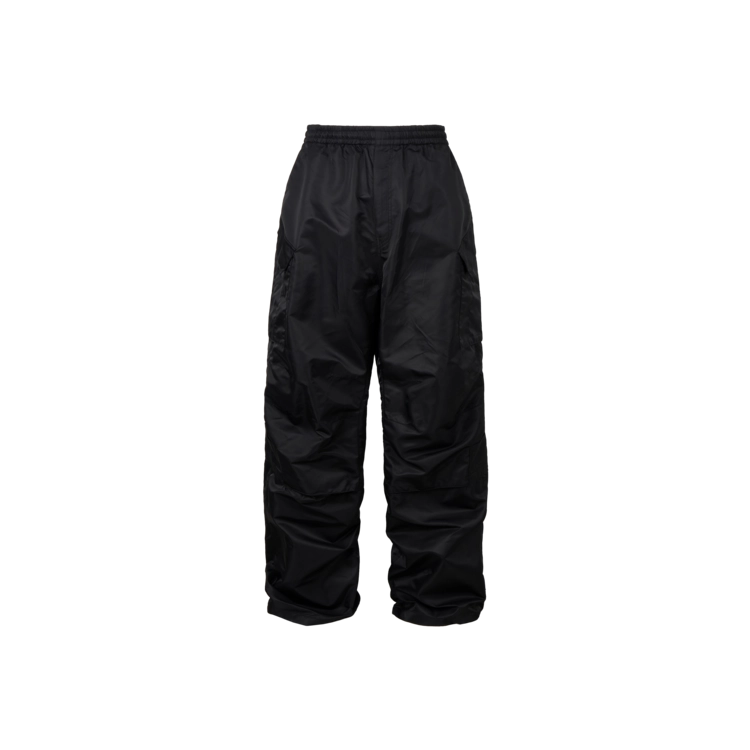 WIDE BAGGY NYLON POCKET CARGO PANTS - BLACK