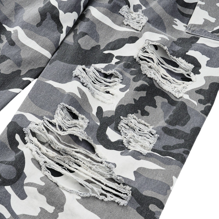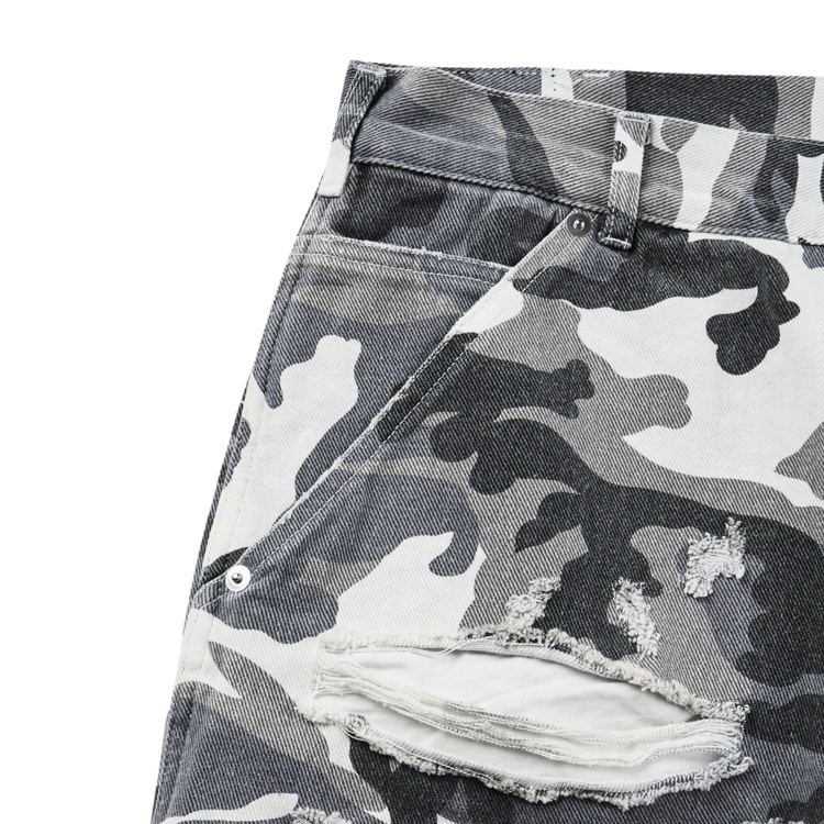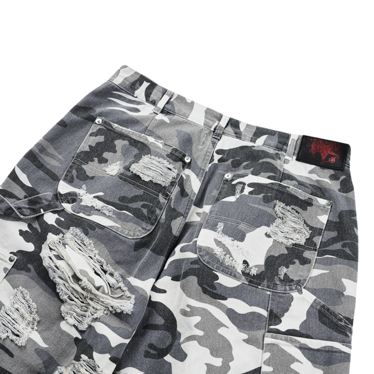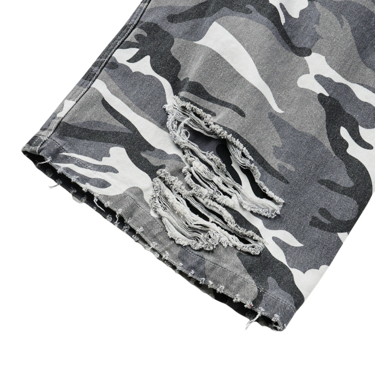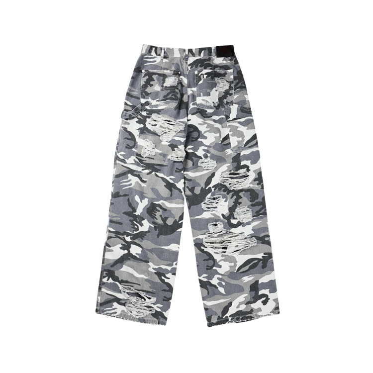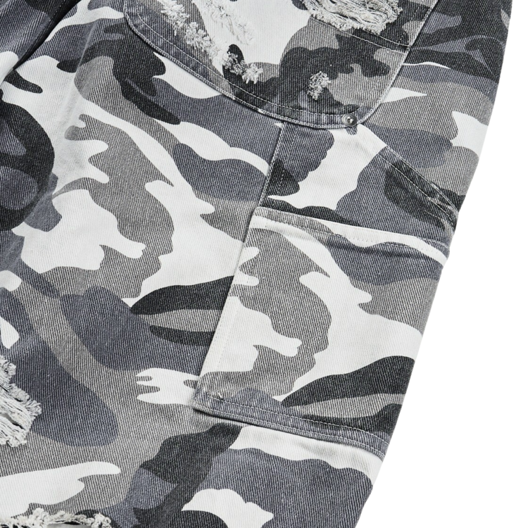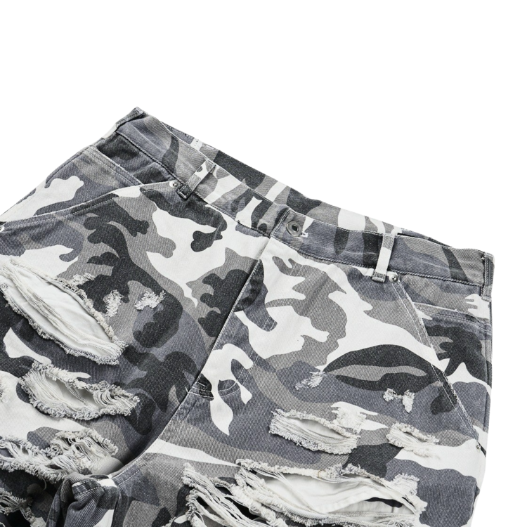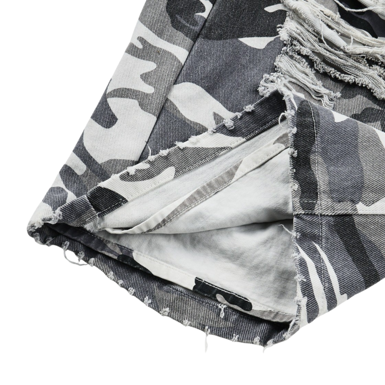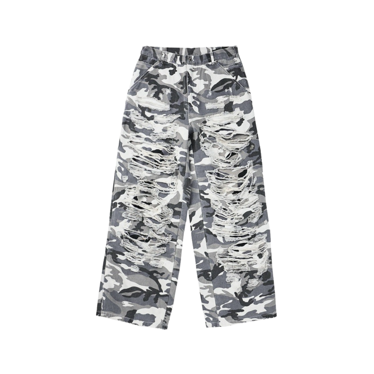 DOUBLE LAYERED DISTRESSED CAMO PANTS - WHITE CAMOSOLDOUT