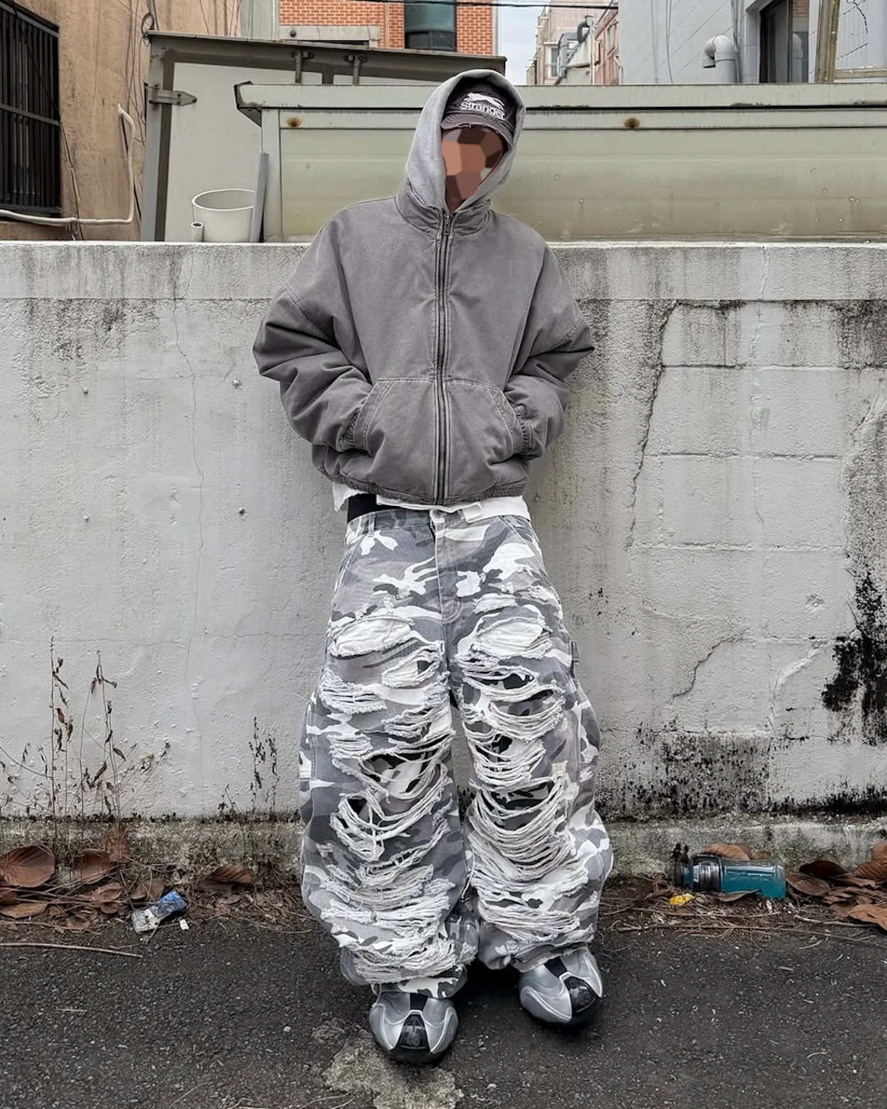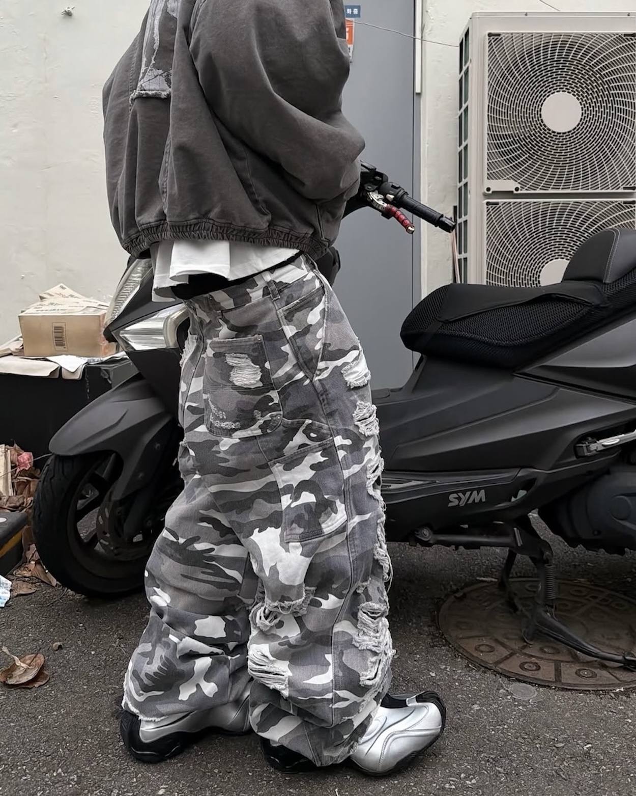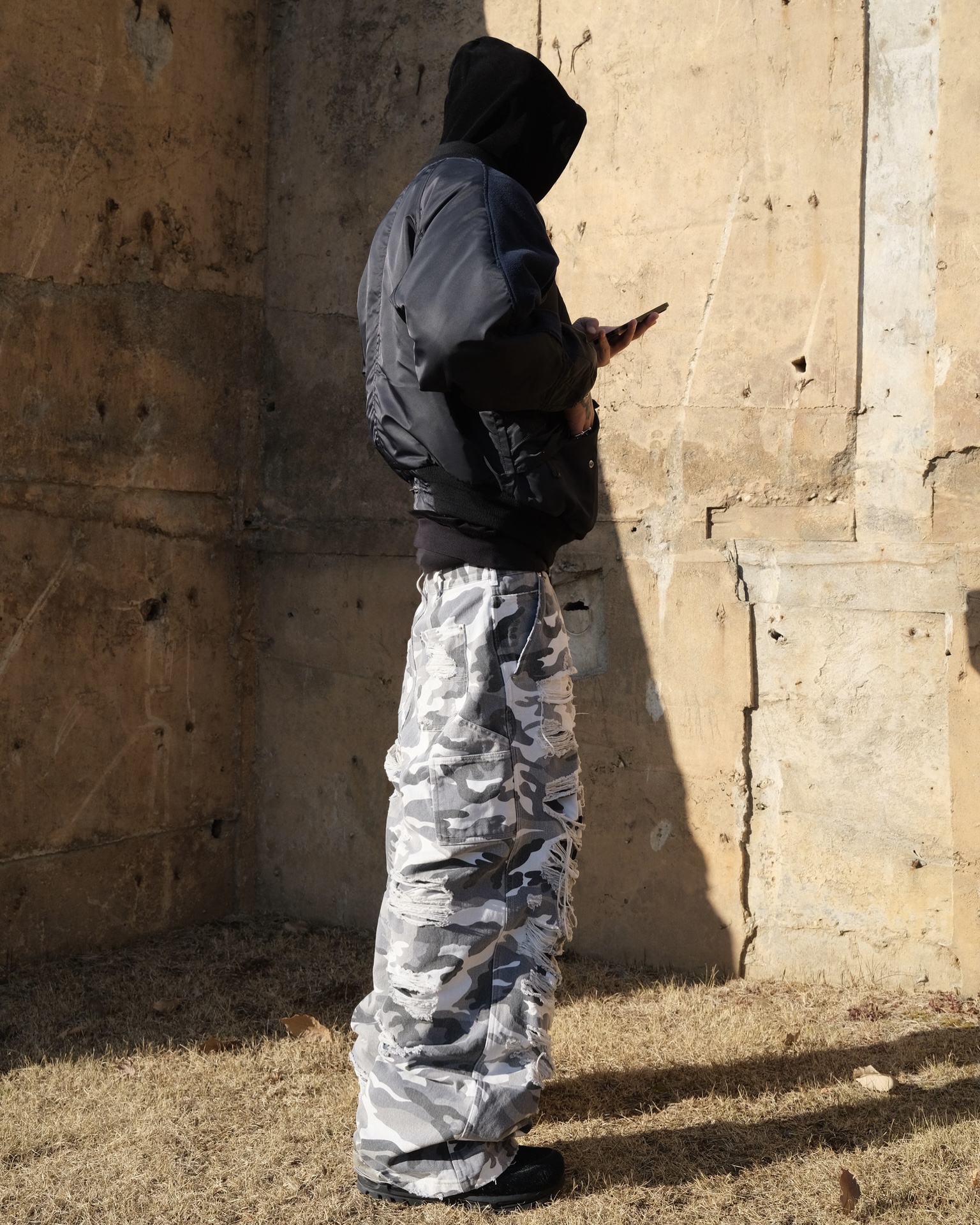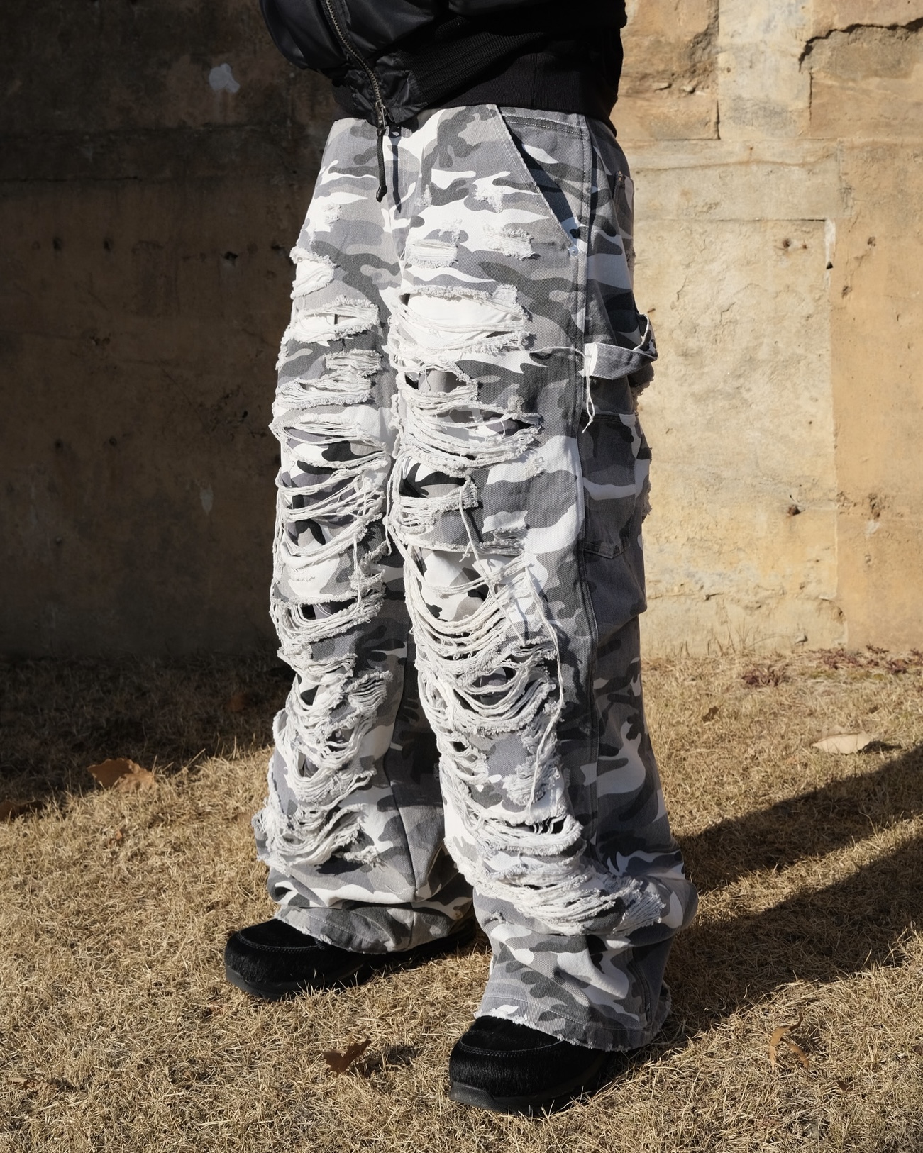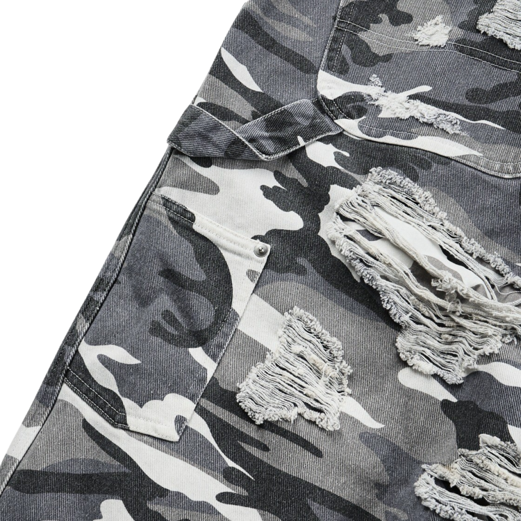 DOUBLE LAYERED DISTRESSED CAMO PANTS - WHITE CAMOSOLDOUT