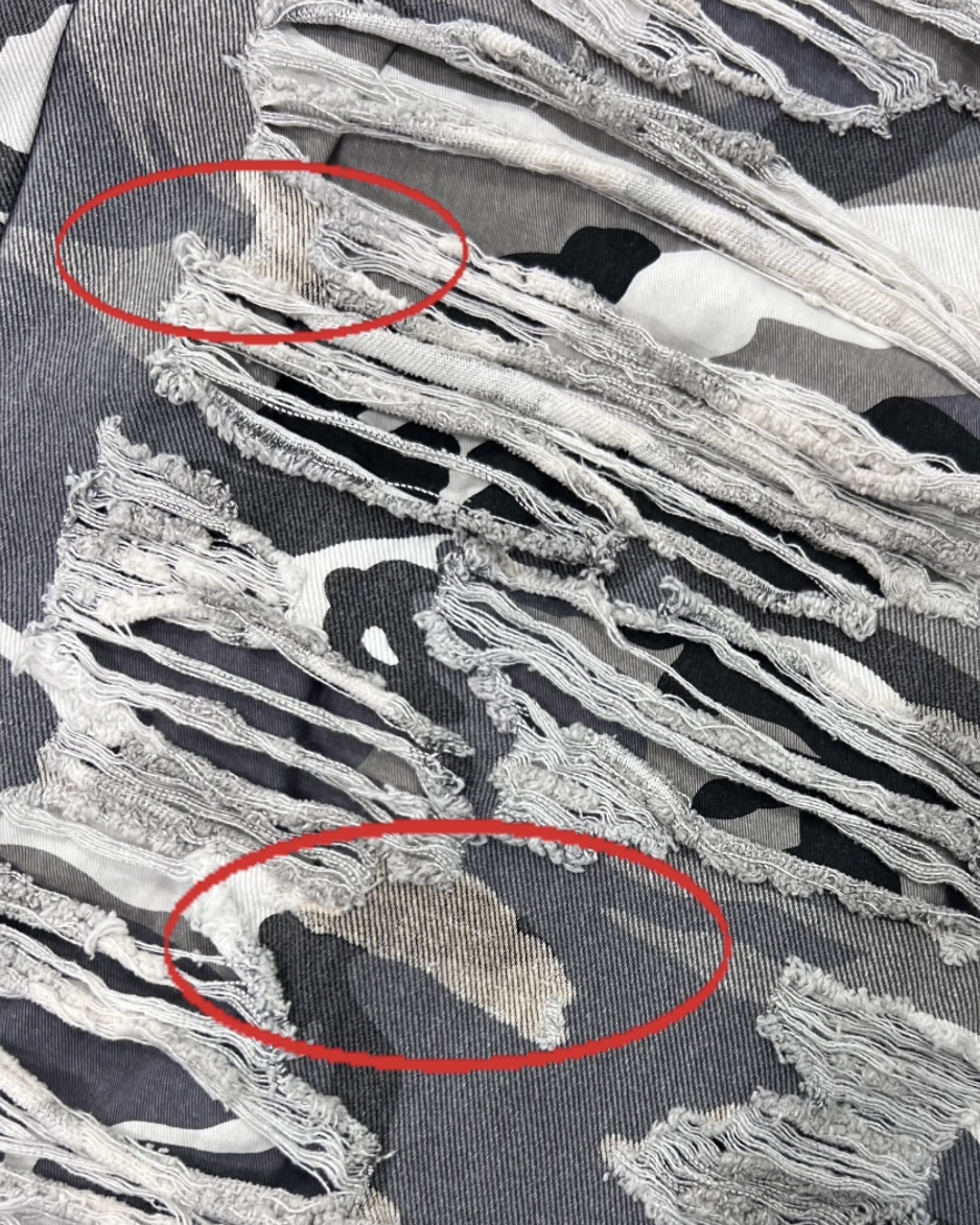 "This item features high-temperature laser-cut distressed details. Due to the characteristics of the white fabric, slight scorch marks may appear on the edges. This is a natural part of the production process and not a defect. Please be advised that exchanges or returns for this reason are not possible. Shop carefully"